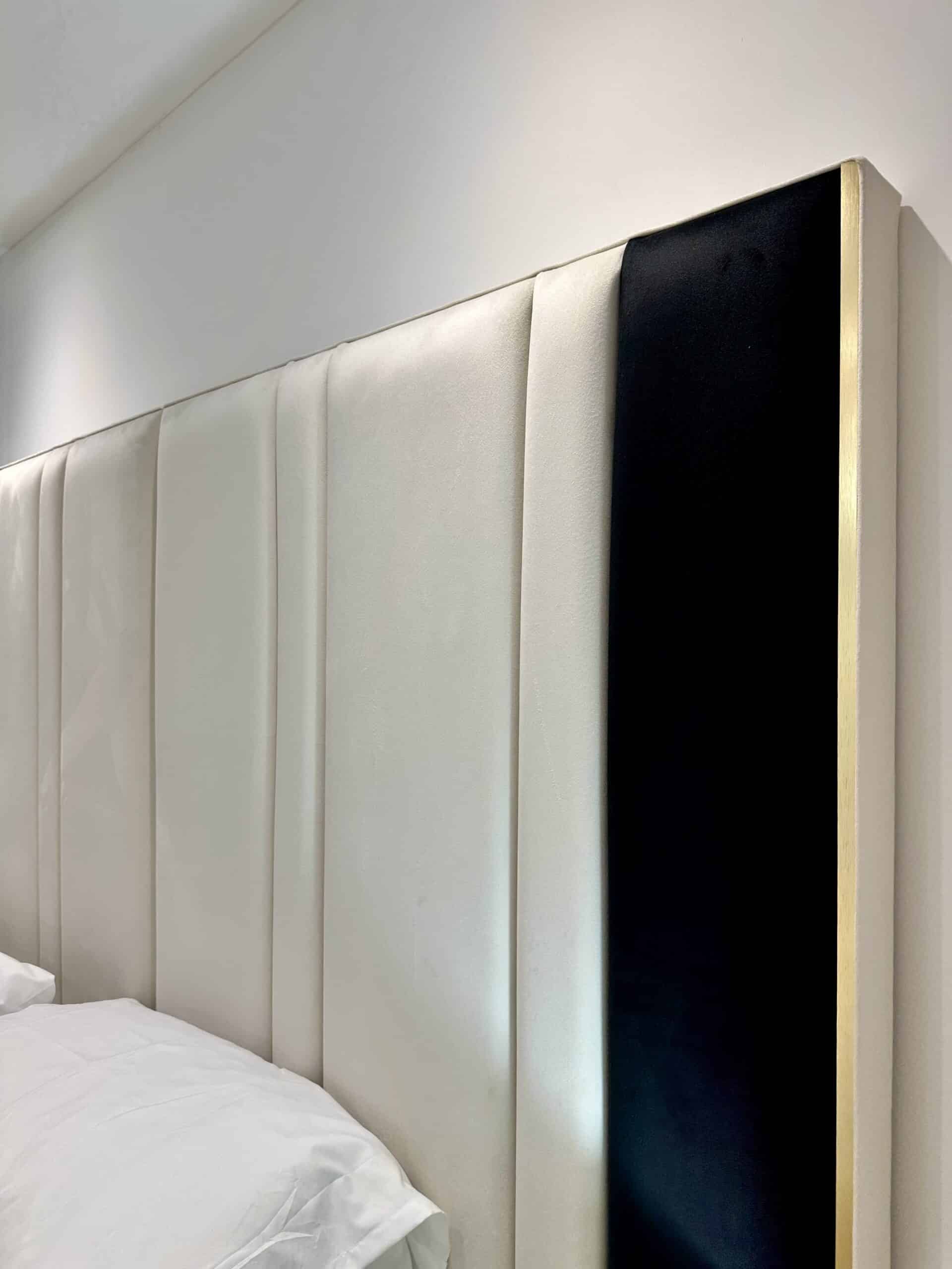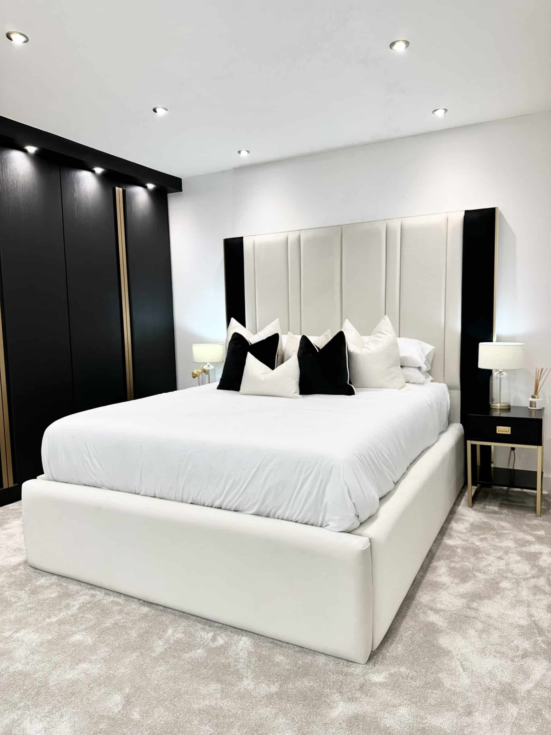 The Elixir Bed is designed to make a statement, featuring an accentuated headboard with contrast black plush paneling and our exclusive Vogue Gold trim as standard. A striking combination of luxury and elegance, it transforms any bedroom into a modern sanctuary. Also available in Plush Velvet, Teddy Boucle, Wool.
