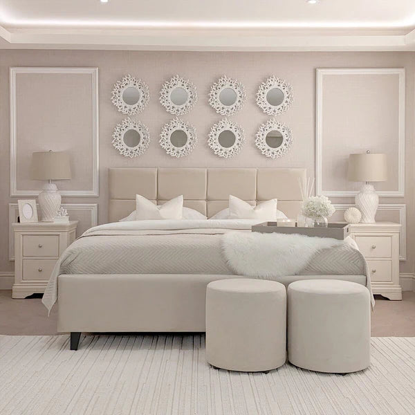 Bella Luxury Vanilla Velvet Upholstered Bed