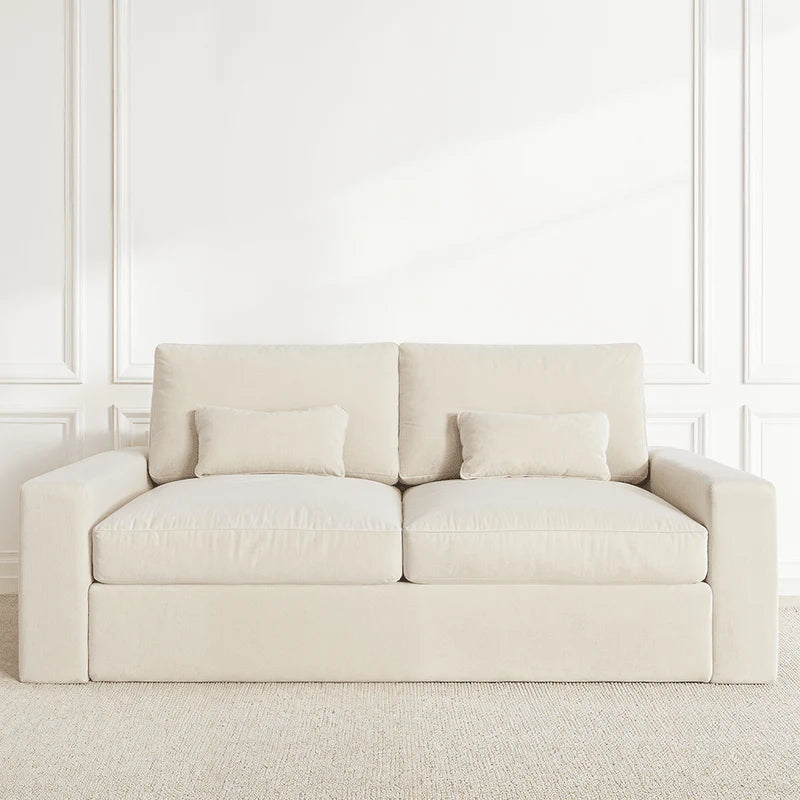 Upholstered in sumptuously soft cream velvet, the sofa boasts a smooth, tailored finish with exceptional durability. Thoughtfully crafted with reinforced stitching and premium cushioning, it delivers lasting comfort and elegance perfect for everyday relaxation and refined entertaining.