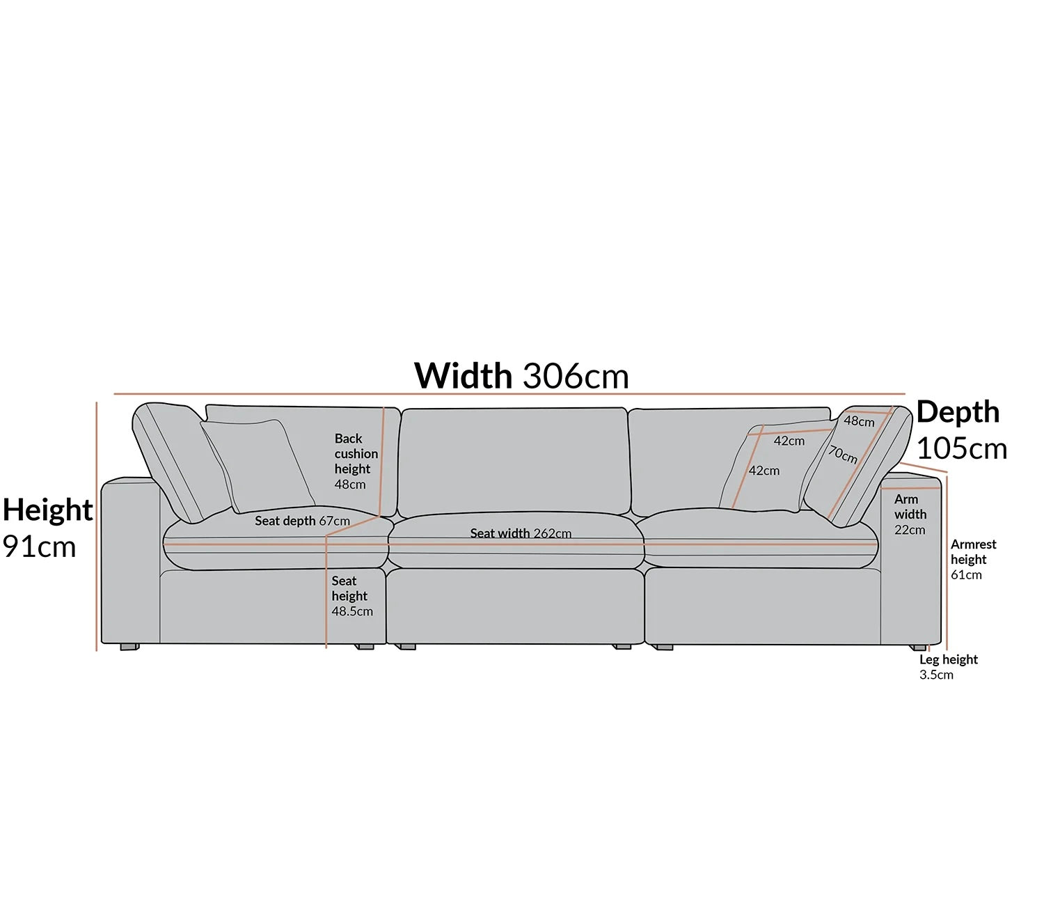 Sola Modular 3-Piece Sofa With Feather Cushions