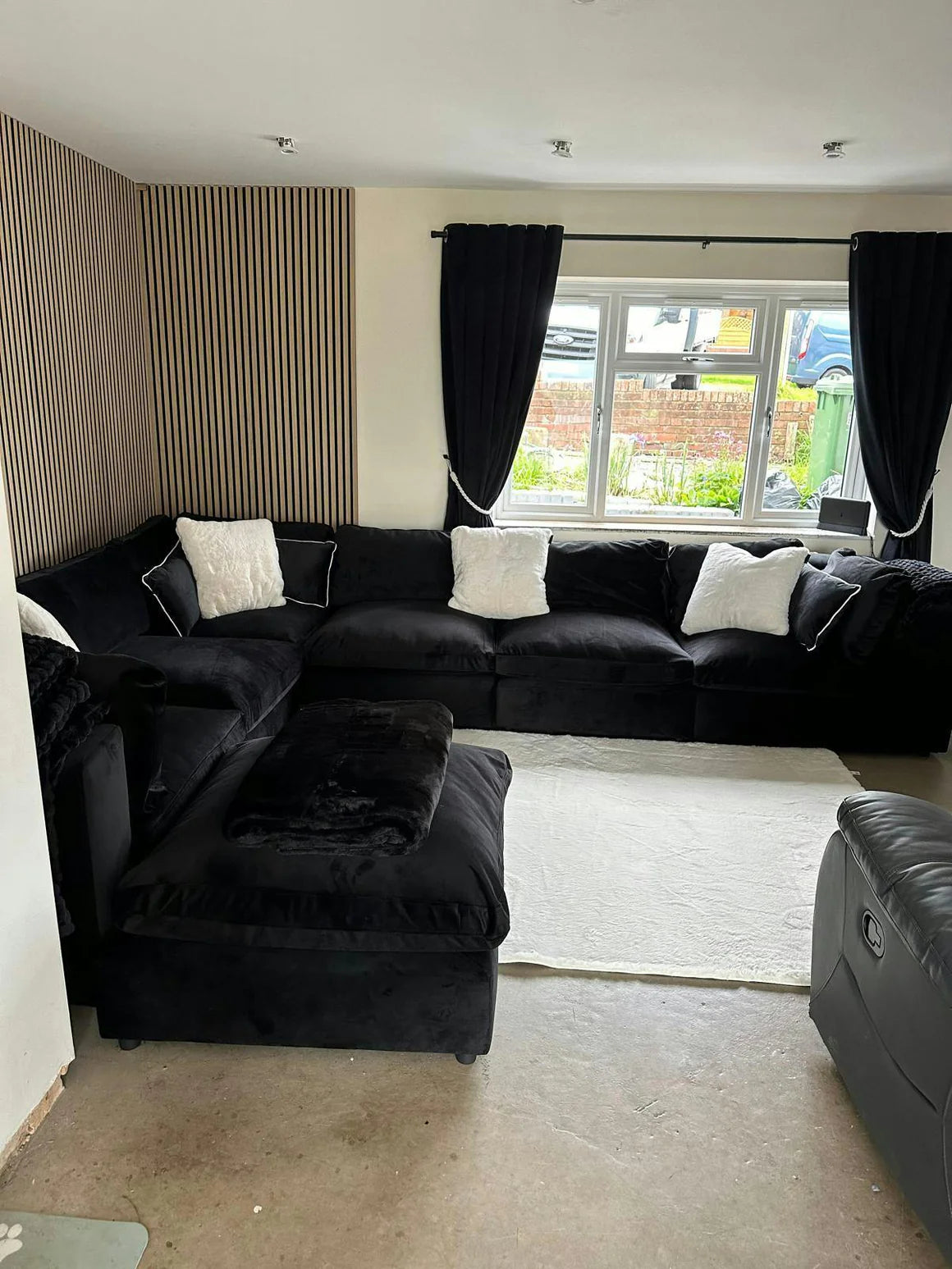Designed with sumptuous cushioning and a spacious 6-seat corner configuration, this set includes an additional offering extra comfort and flexibility. Upholstered in plush velvet black for a bold, dramatic statement or soft cream fabric for a timeless, airy elegance, the sofa seamlessly enhances both contemporary and classic interiors.