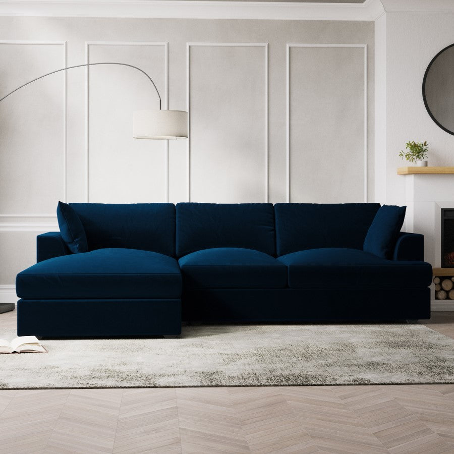 Beautifully crafted in luxurious soft dark grey velvet, the Verona Right-Hand 4-Seater Chaise Corner Sofa brings contemporary elegance and everyday comfort to your home. Its deep chaise design offers the perfect spot to stretch out and unwind, while the saddle arms and clean lines create a timeless, modern silhouette that blends effortlessly with any interior style. Upholstered in a durable, easy-to-clean velvet, this spacious sofa combines sophistication with practicality — ideal for family living. Generously filled foam seat and back cushions provide exceptional comfort and support, while the removable cushions make plumping and cleaning simple, ensuring lasting softness and style. Complete with two matching scatter cushions, the Verona promises to be the ultimate centrepiece for relaxed, refined living. its also available in Left Hand Side and wide range of fabrics and colors.